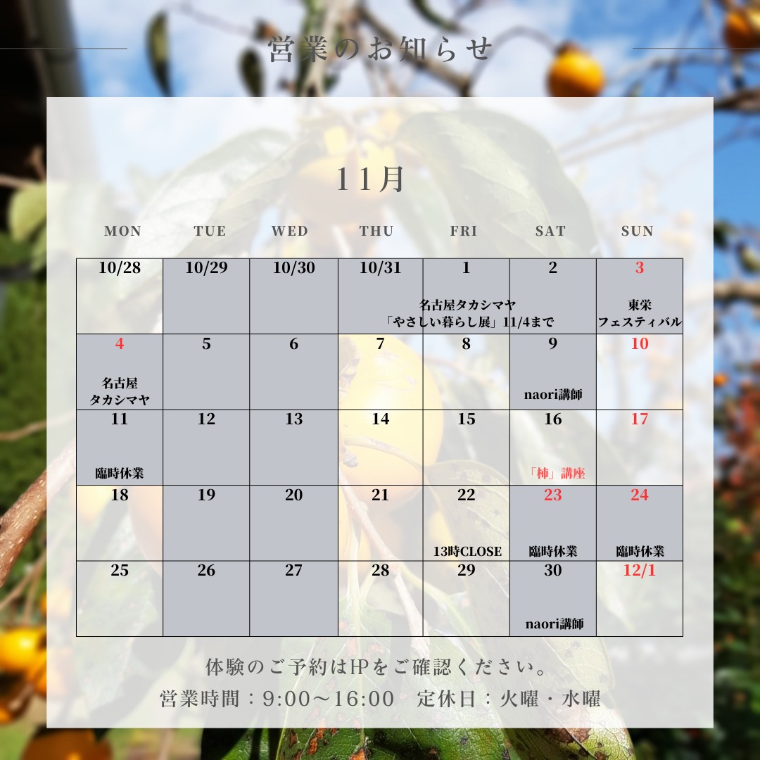 ※11月より冬季営業(16時閉店)に変更させていただきます。