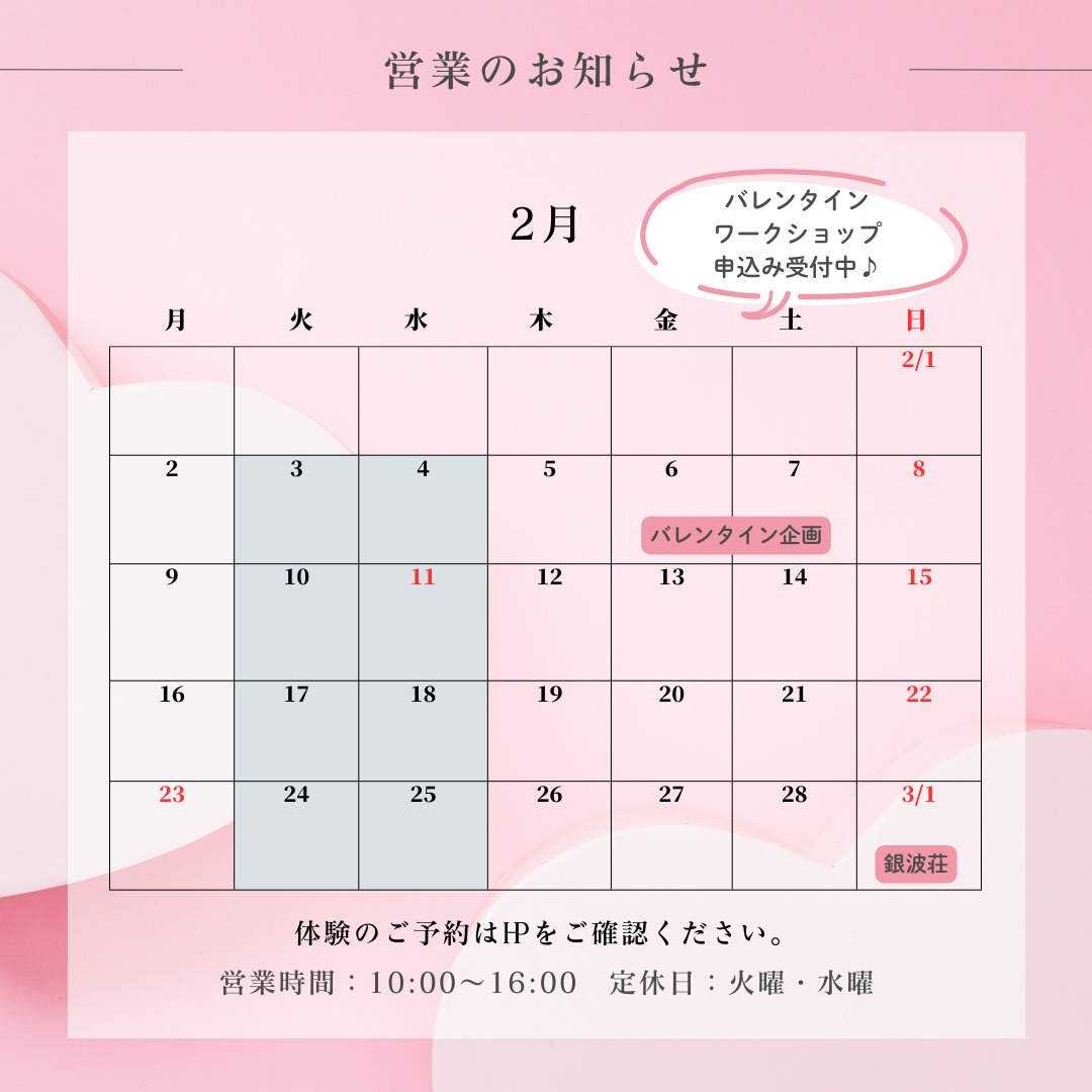 日時:2月6日(金)&7日(土)10:00~16:00 ※最終受付15:00